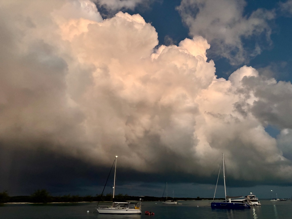 The Bahamas was wonderful. As soon as we crossed over to the Berry Islands the water was crystal-clear and the sand was white. So much different than the sailing we had experienced before. The Bahamas is incredibly shallow, full of sharks, conch fritters at every restaurant – and the beer was not great. There were weather events with a lot of drama, narrow island cuts timed to avoid currents and standing waves. The water was amazing. It was so clear you could not tell how deep or shallow it was. The sea life was amazing; rays, tuna, schools of colorful fish, and we love sharks.