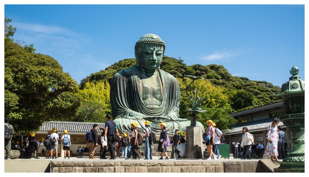 We took a day trip to Kamakura. It was great to get out of Tokyo for a while and we will do more of this. Kamakura is just a little over an hour south on what appeared to be a regular commuter train yet cruised up to 75 mph. A smallish town near the coast, Kamakura has lots of shrines and temples, plenty of restaurants to pick from, narrow streets to explore, and the Great Buddha of Kamakura – the second tallest in Japan. There are also hiking trails. This is where Debbie and I went different directions – she to Hasedera, a Buddhist temple on a hill overlooking the coast, and I on a 5 km trail loop —half of it felt straight up the hill. Fortunately I was rewarded with a French cafe at the top, the way a civilized hike should be.