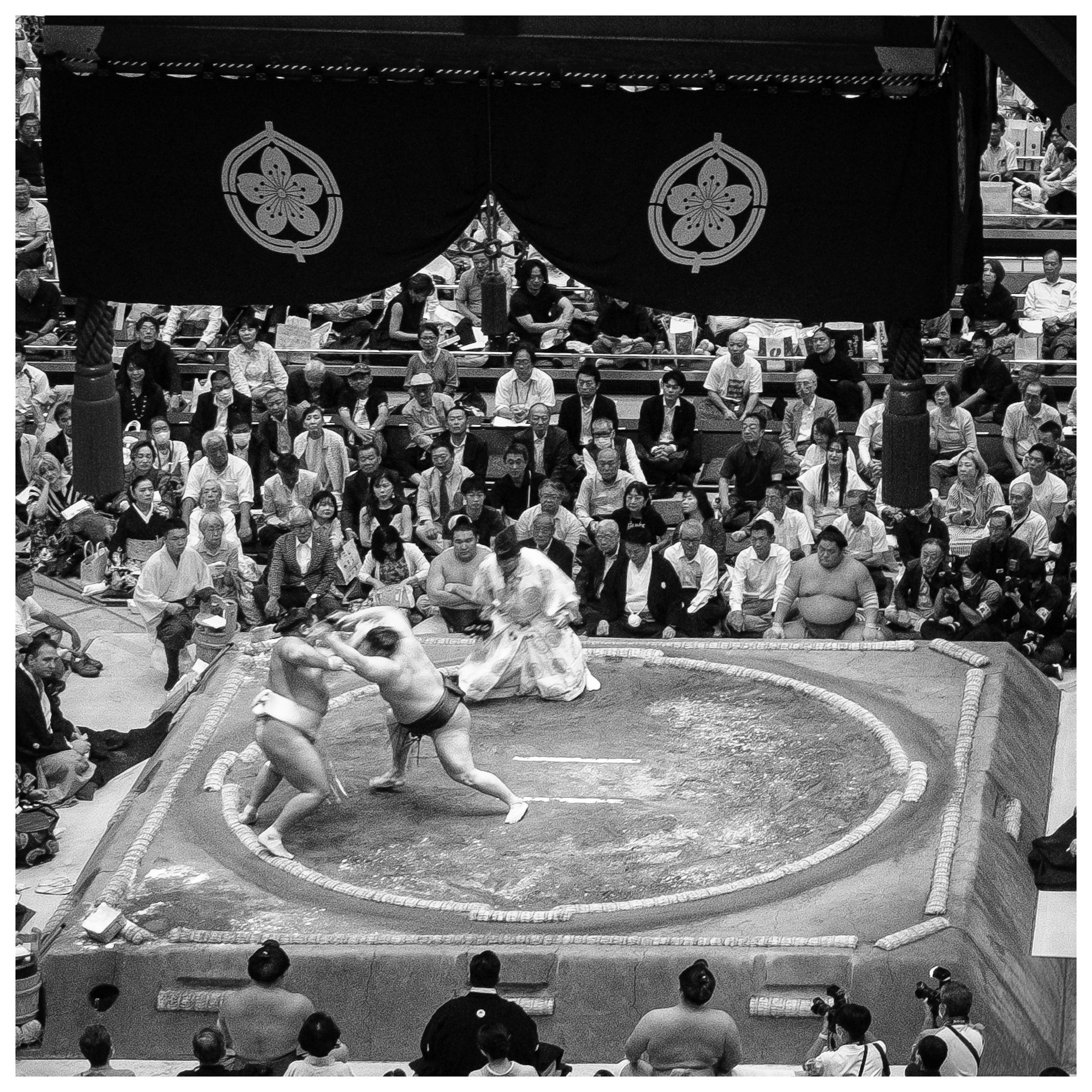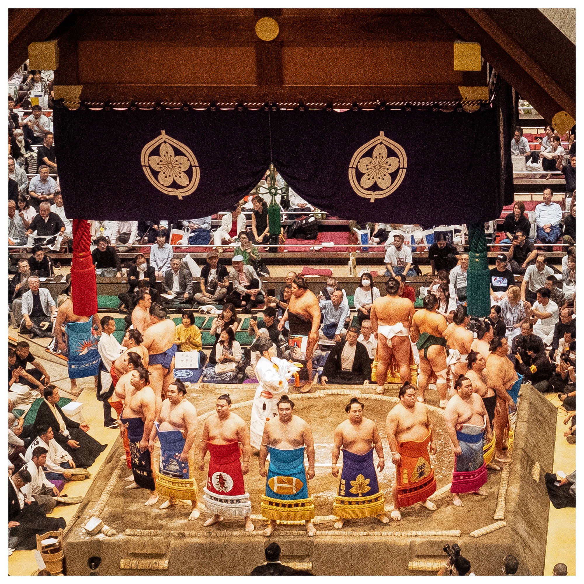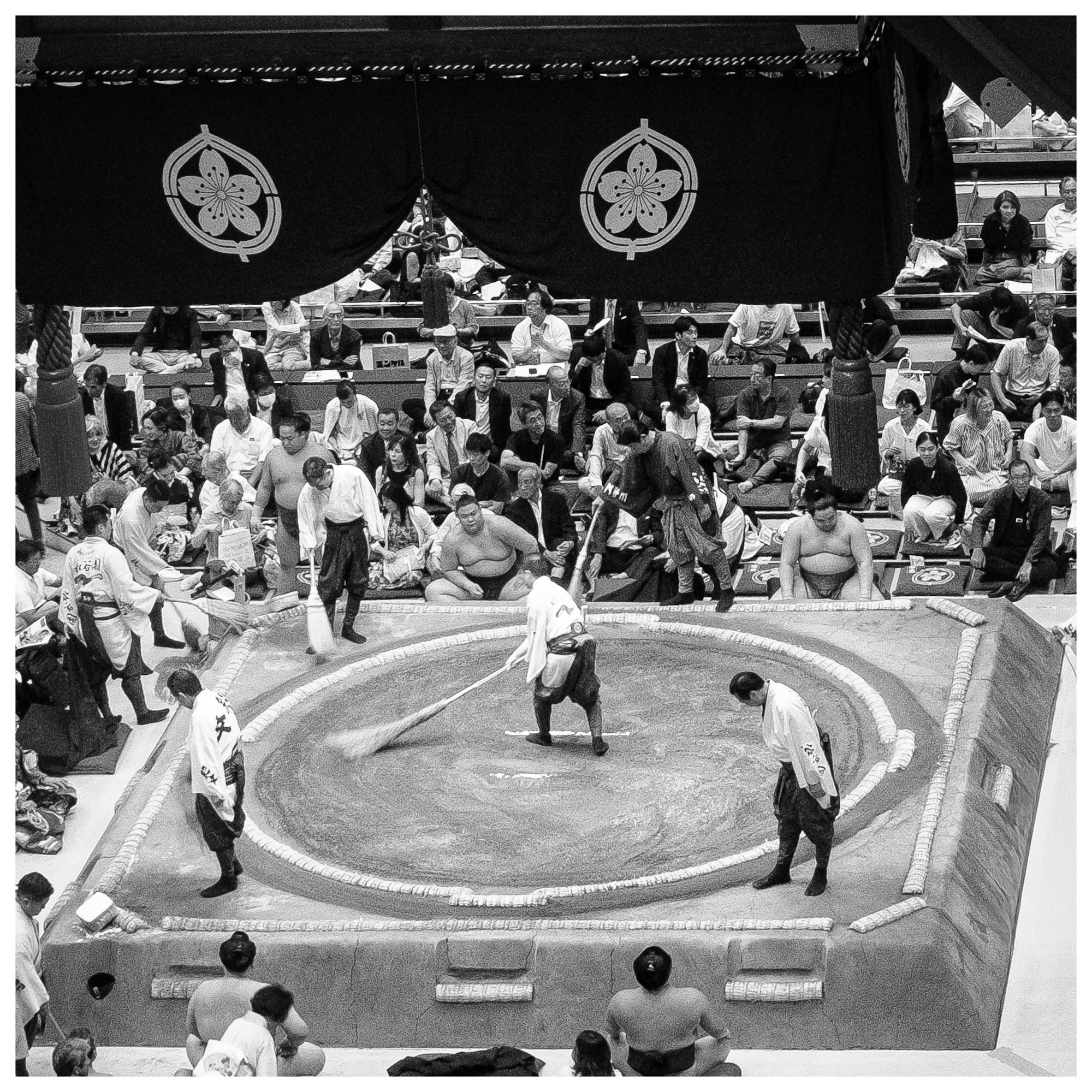 Matches are short and each Rikishionly competes once a day. We saw matches that lasted two minutes to as short as 30 seconds. It is quick and dynamic with lots of action from the Rikishis, the “referees,” and the prep of the Dohyo.