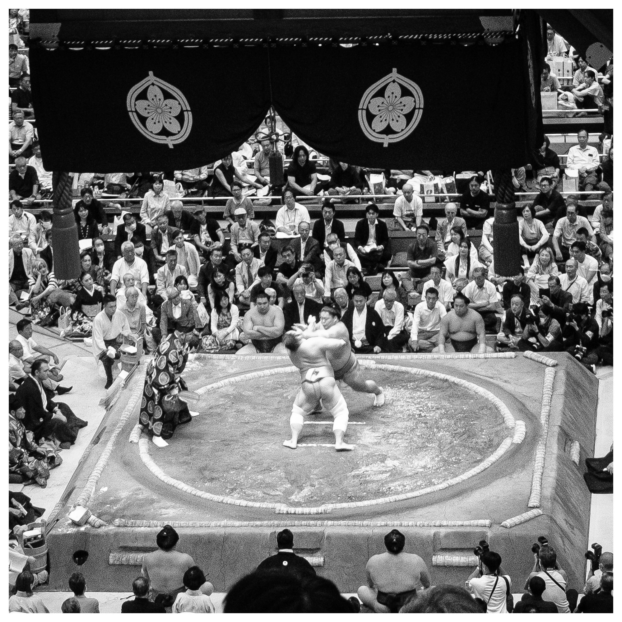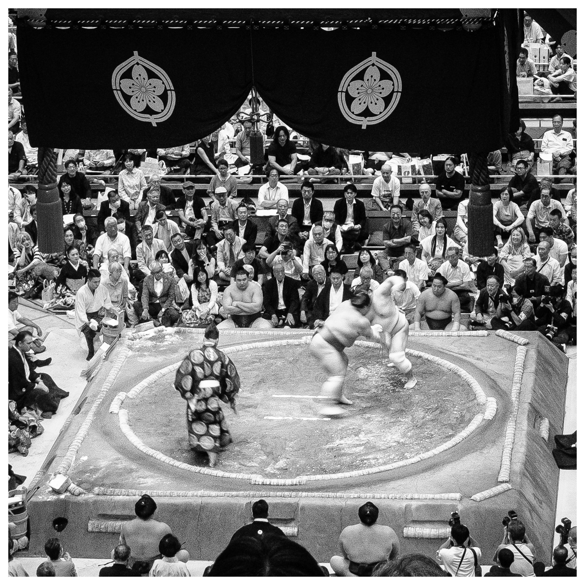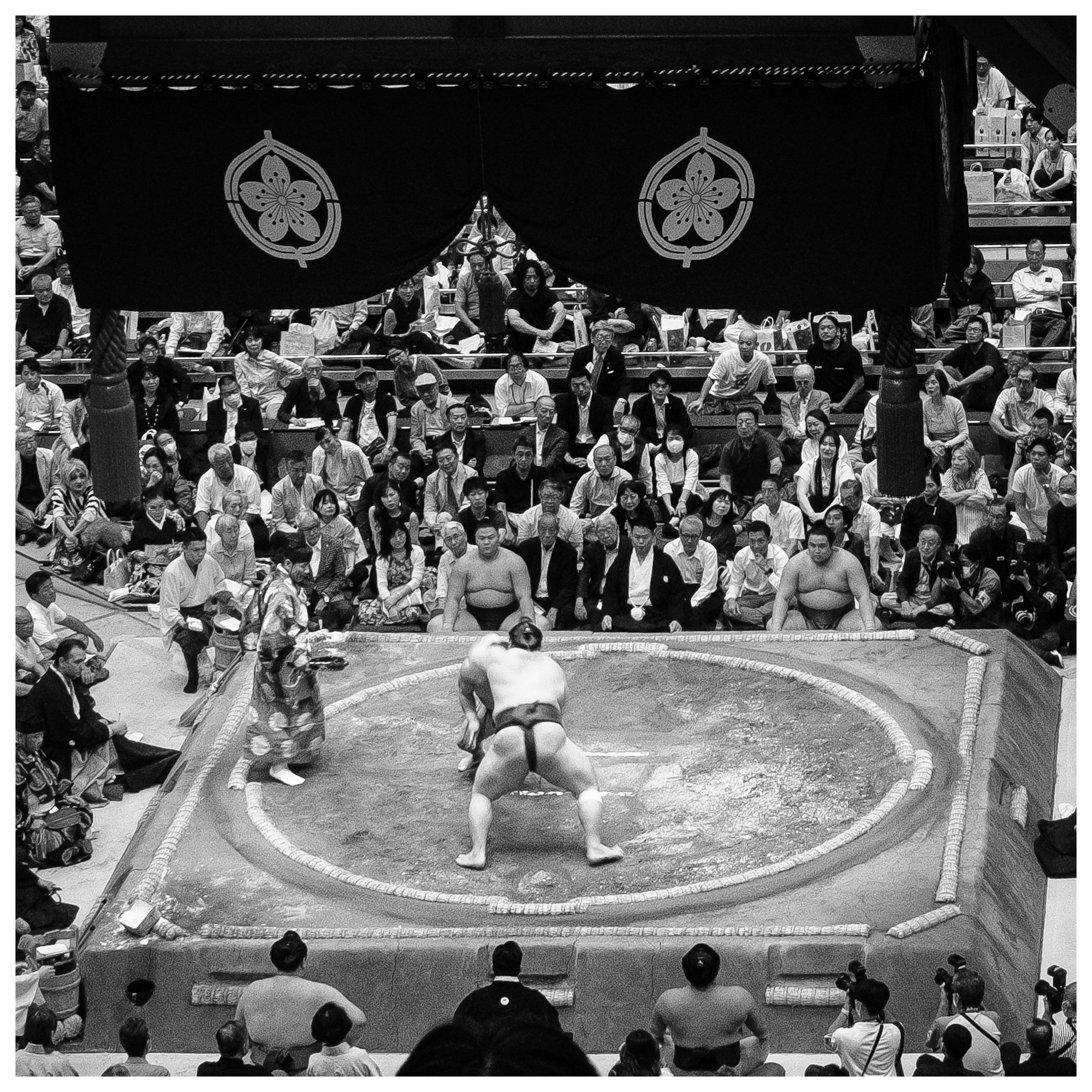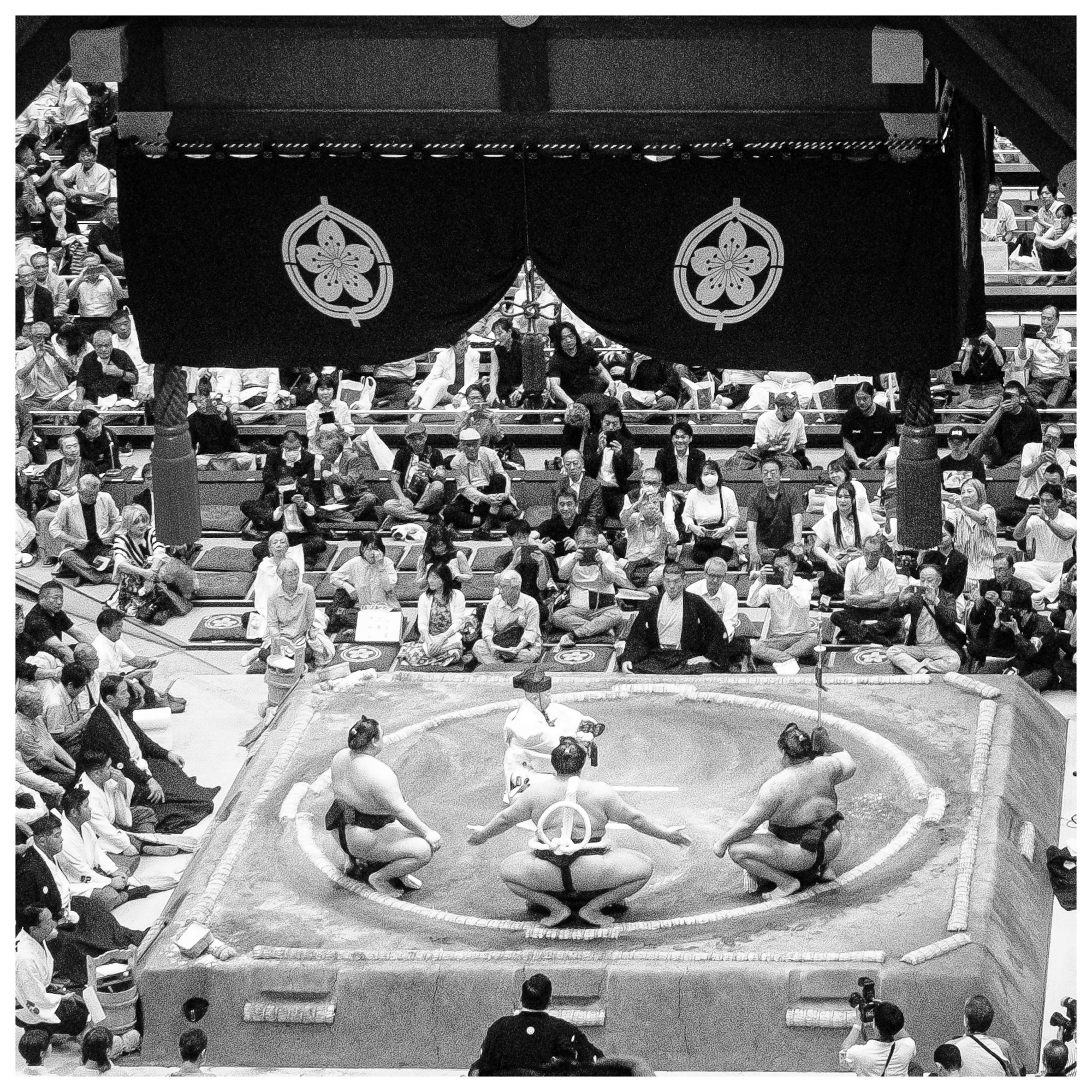 Matches are short and each Rikishionly competes once a day. We saw matches that lasted two minutes to as short as 30 seconds. It is quick and dynamic with lots of action from the Rikishis, the “referees,” and the prep of the Dohyo.